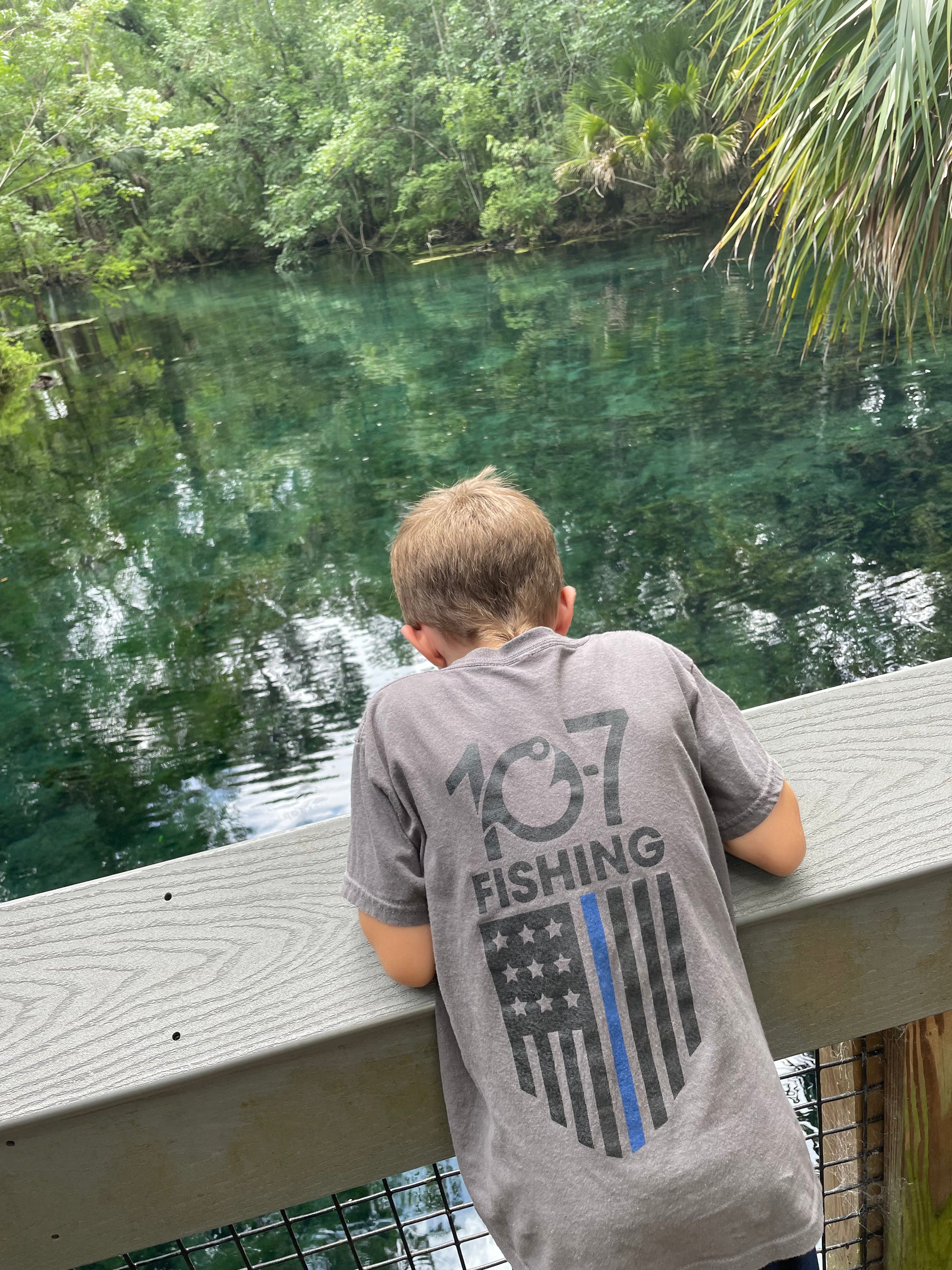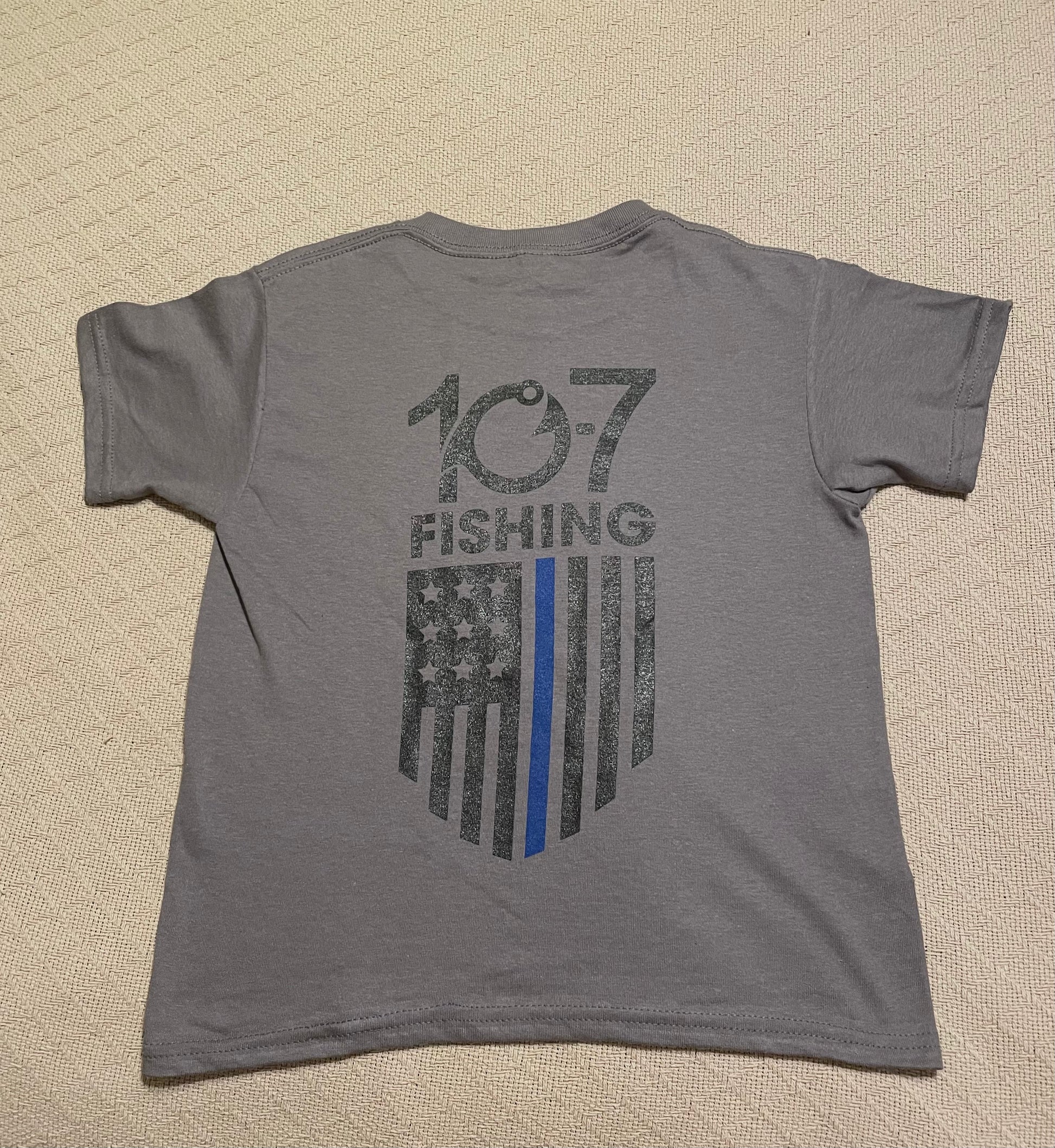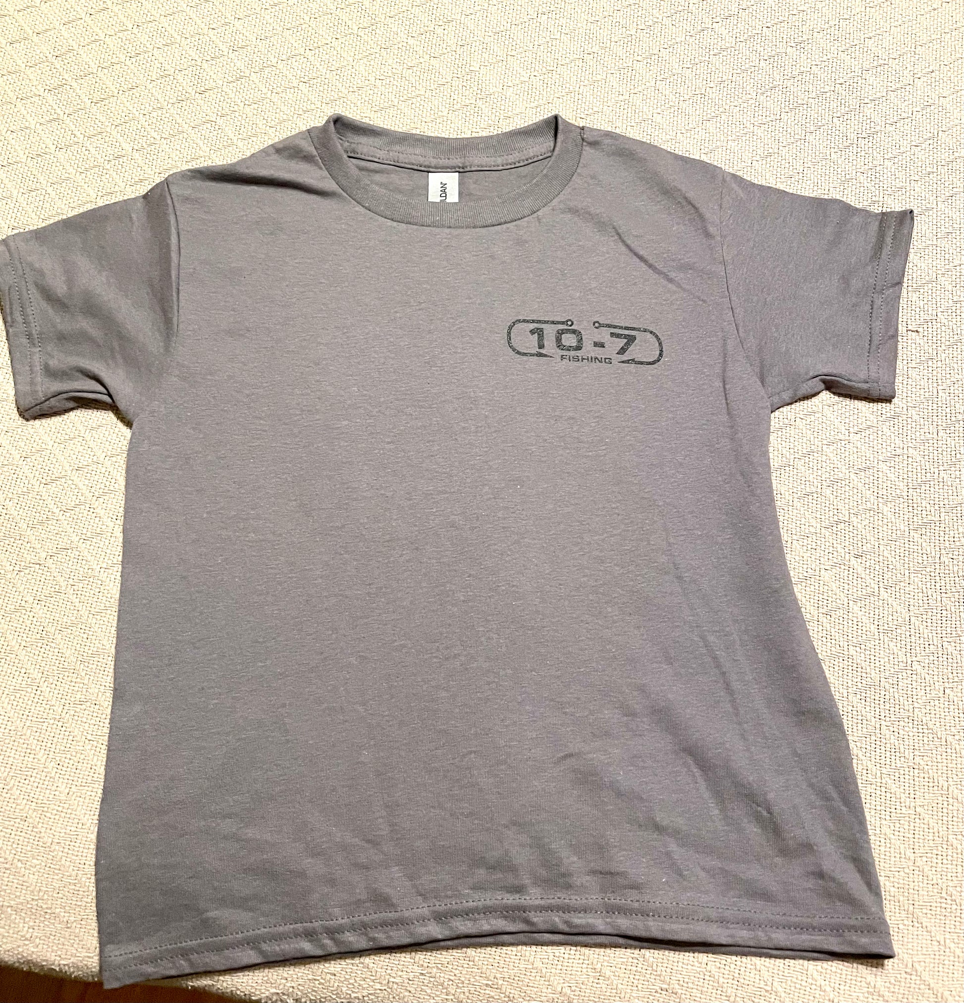Heather grey cotton blend youth T-shirt with small logo on the chest.